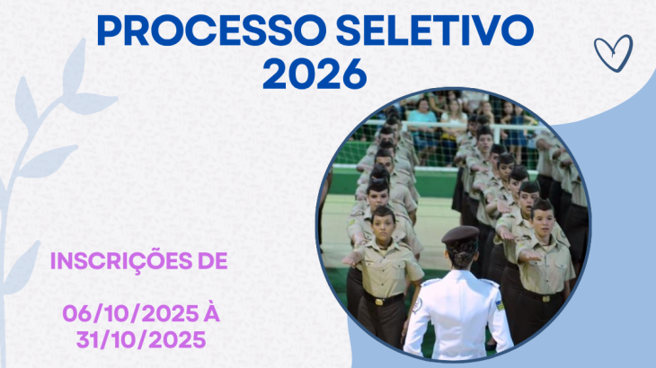 O Comando de Ensino da Policia Militar do Estado de Goiás, torna público o Edital n.º 002/2026-CEPM, que normatiza o Processo Seletivo para ingresso de novos alunos nas Unidades dos Colégios Estaduais da Polícia Militar de Goiás (CEPMGs), para o ano letivo de 2026. Das inscrições As inscrições para o processo seletivo 2026, serão realizadas exclusivamente […]