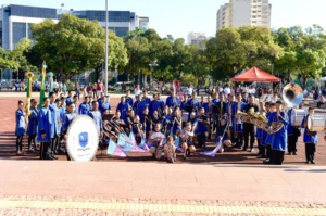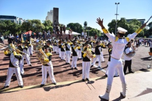 Na manhã de ontem 28/04, dando sequência ao projeto “Viva a Praça Cívica”, de iniciativa do Governo de Goiás, a Secretaria da Educação comemorou o “Dia Mundial da Educação” na referida praça. O evento que contou com a presença da Primeira Dama do Estado, Gracinha Caiado, levou à Praça Cívica diversas apresentações artísticas e culturais, como de tribos indígenas e bandas de música, dentre elas a “Banda de Música e Comissão de Frente” do CEPMG Vasco dos Reis, além de um pelotão de alunos do CEPMG Ayrton Sena. O Comandante de Ensino, Tenente Coronel Vilela, participou do evento, juntamente com uma comissão de Comandantes e Diretores dos Cepmgs de Goiânia e Região Metropolitana. Também esteve presente o Coronel Avelar Lopes de Viveiros, Superintendente Executivo da Seduc, acompanhando a Secretária de Educação Fátima Gavioli.